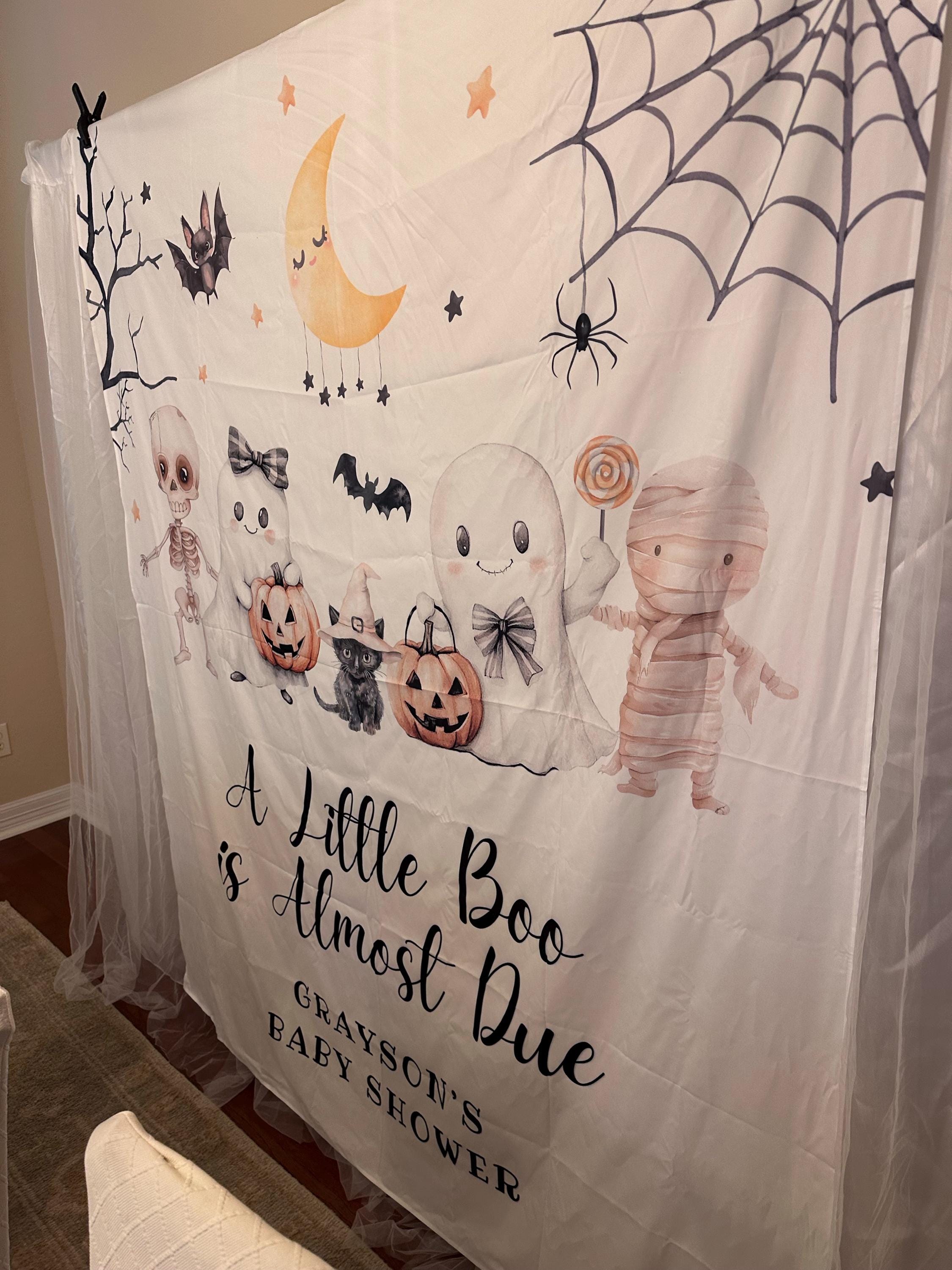 Celebrate the upcoming arrival with our Little Boo is Almost Due Banner, a sweet and spooky way to decorate your baby shower. This Little Boo Baby Shower Decor adds a charming Halloween twist to your special day. Complete the look with our Boo is on the Way Sign, perfect for photos and welcoming guests. Made from high-quality fabric, this custom party backdrop is a beautiful keepsake to cherish long after the celebration ends!